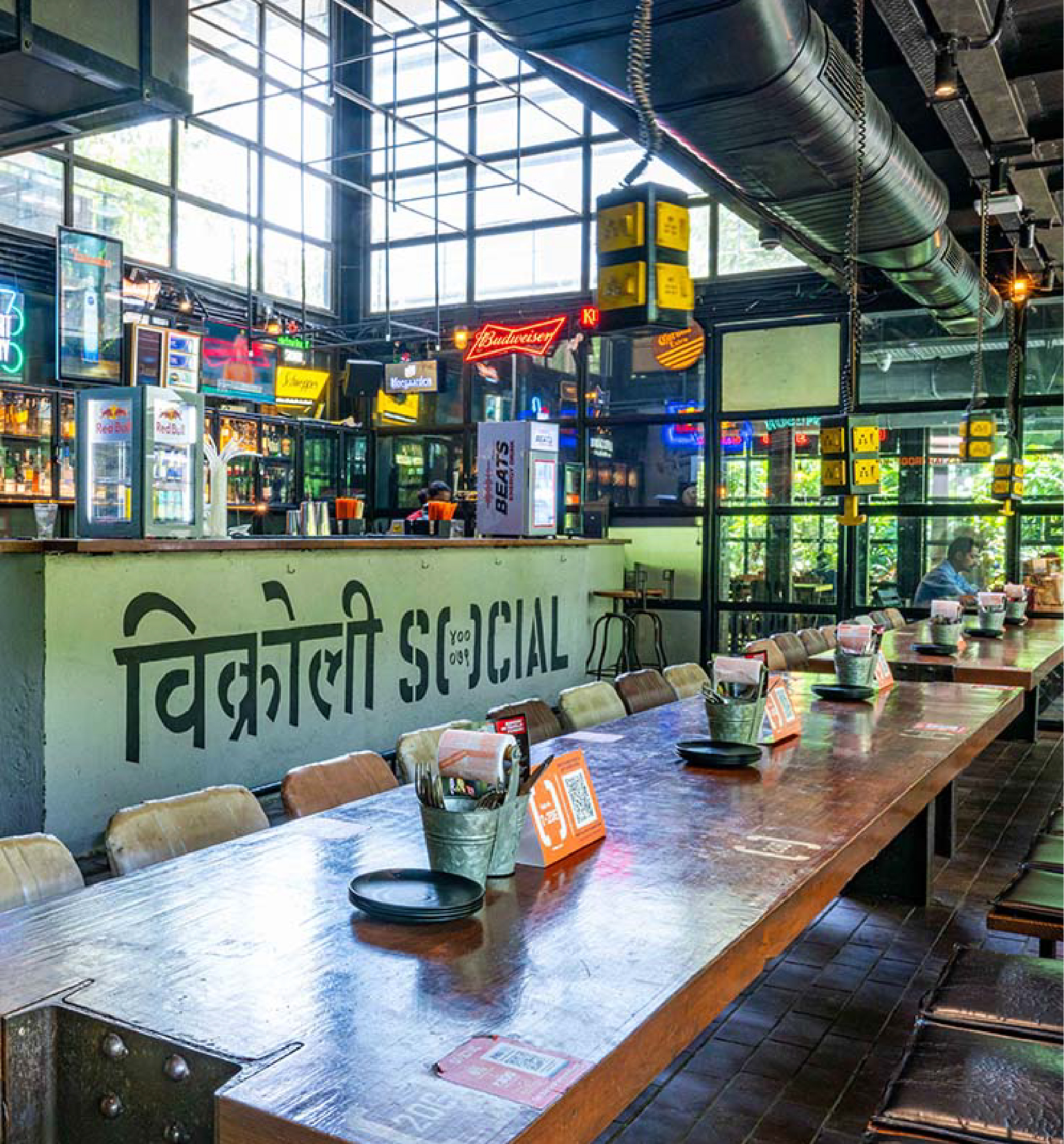 A buzzing café-bar hybrid offering an eclectic mix of global and Indian comfort food, craft cocktails and a creative, industrial-chic ambiance.