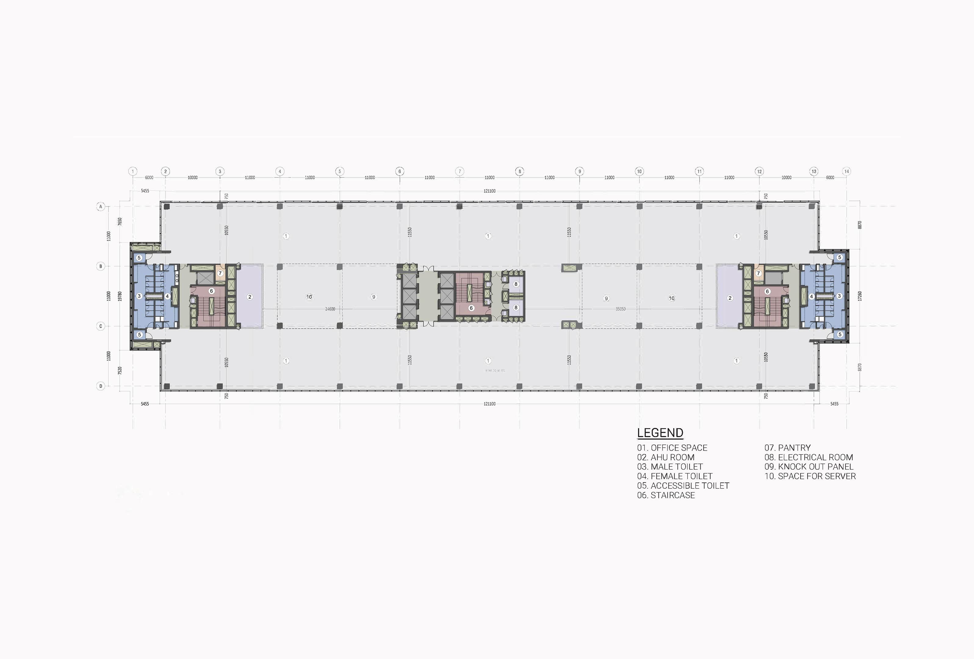 - Continuous corridor with maximized outdoor views for walking and meeting spaces
