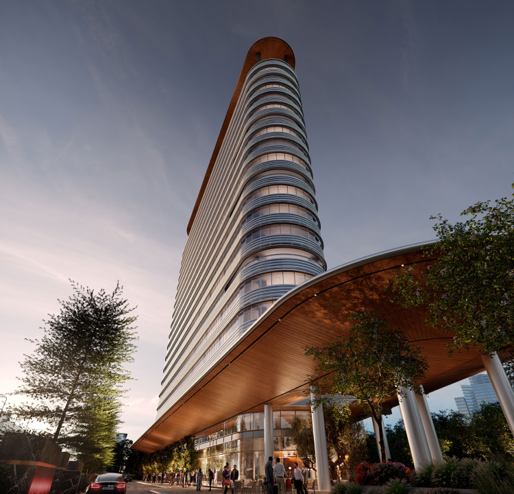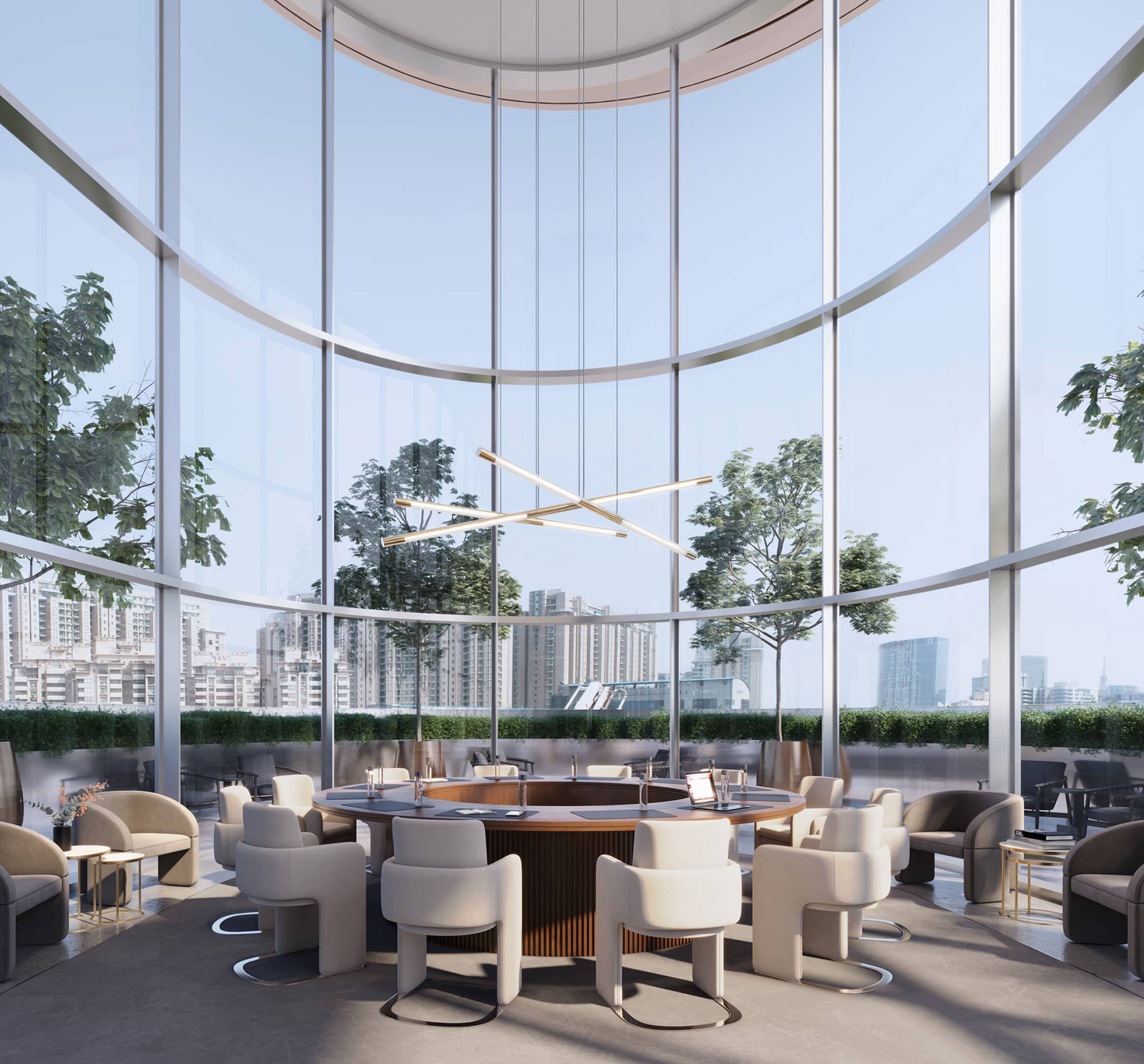 With its striking curved glass façade and soaring verticality, Godrej GCR blends nature and innovation to meet the city’s evolving needs. Thoughtful landscaping, water bodies and an aerodynamic design help cool the space and improve air quality, while a generous canopy offers year-round comfort.