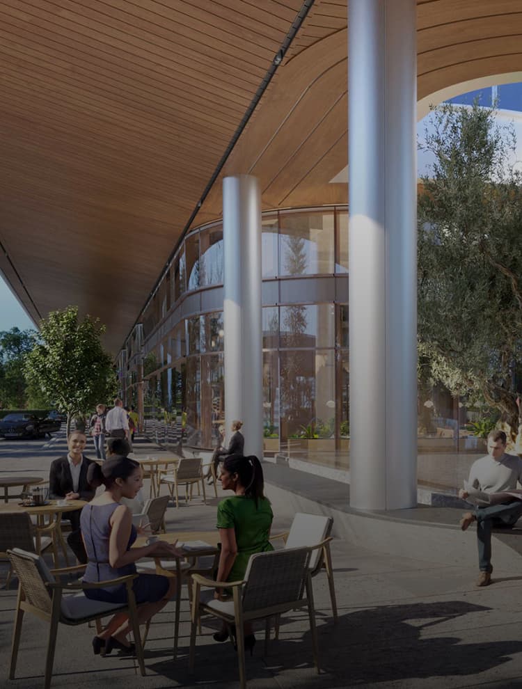 Our expansive lobbies set the stage for art, interaction and community. Open-air work pods redefine traditional offices, fostering dialogue and collaboration. By day, the amphitheatre buzzes with business; by night, it transforms into a stage for live music and cultural events. Alfresco spaces offer a place to unwind, connect and recharge.
